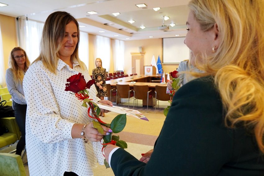Burmistrz dokonał również uroczystego powierzenia Małgorzacie Uruskiej stanowiska dyrektora Szkoły Podstawowej nr 8 w Oleśnicy. Pani dyrektor została wybrana na kolejną kadencję i będzie sprawować swoją funkcję do 31 sierpnia 2026 r.
