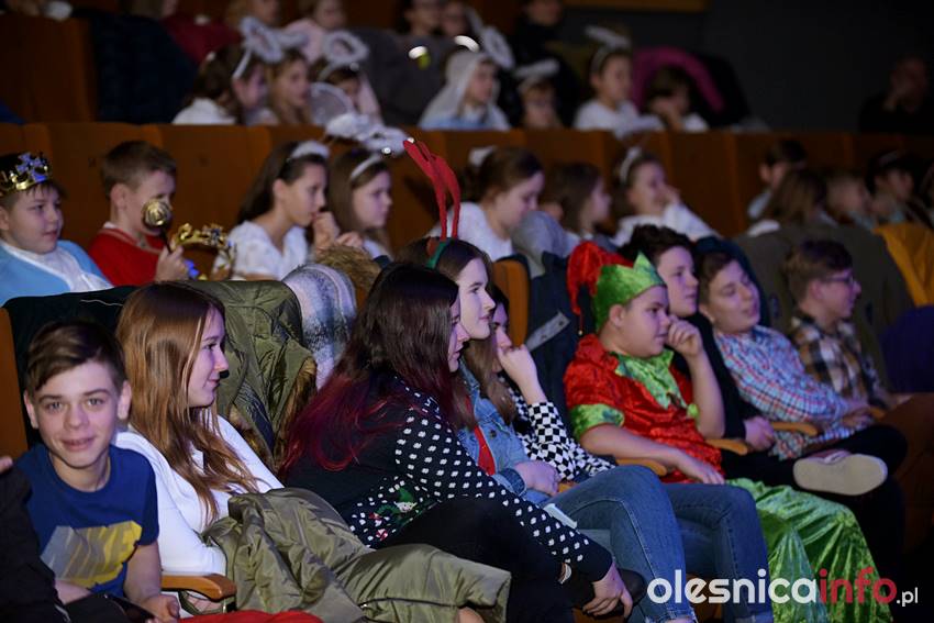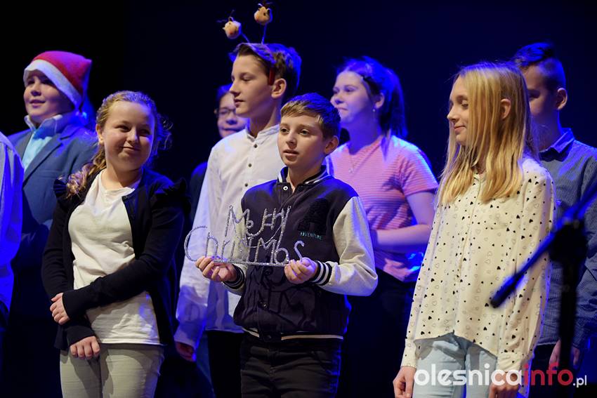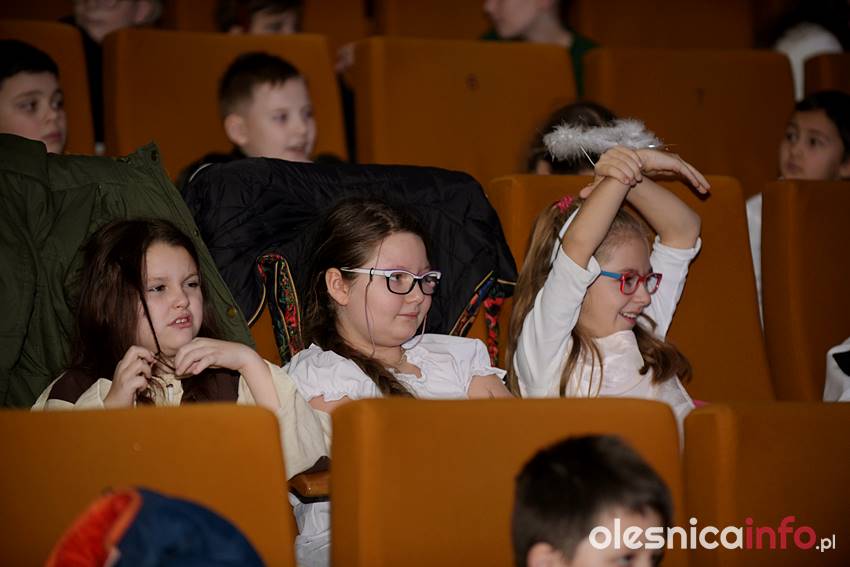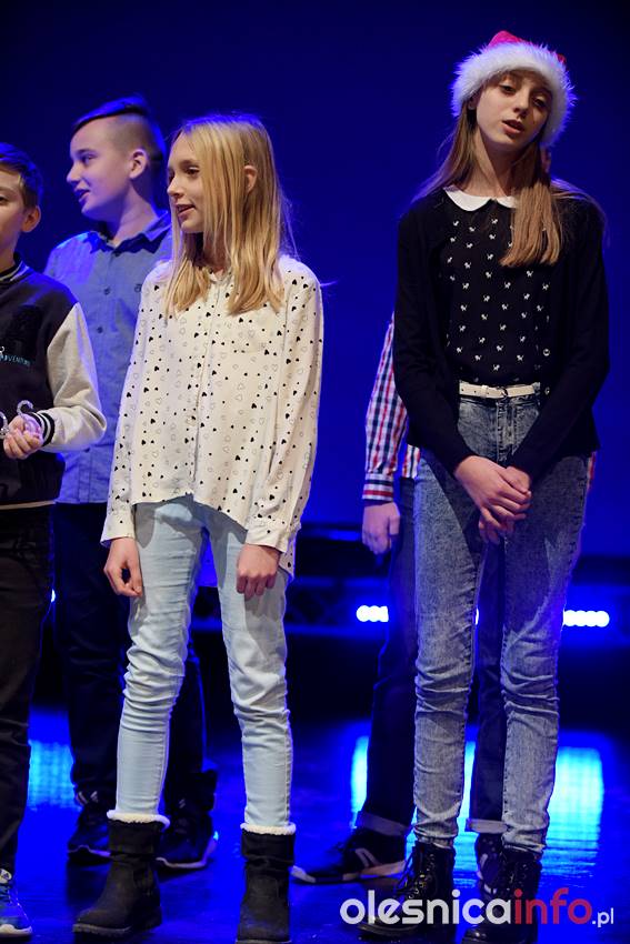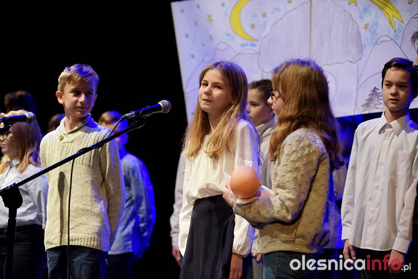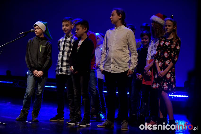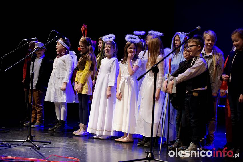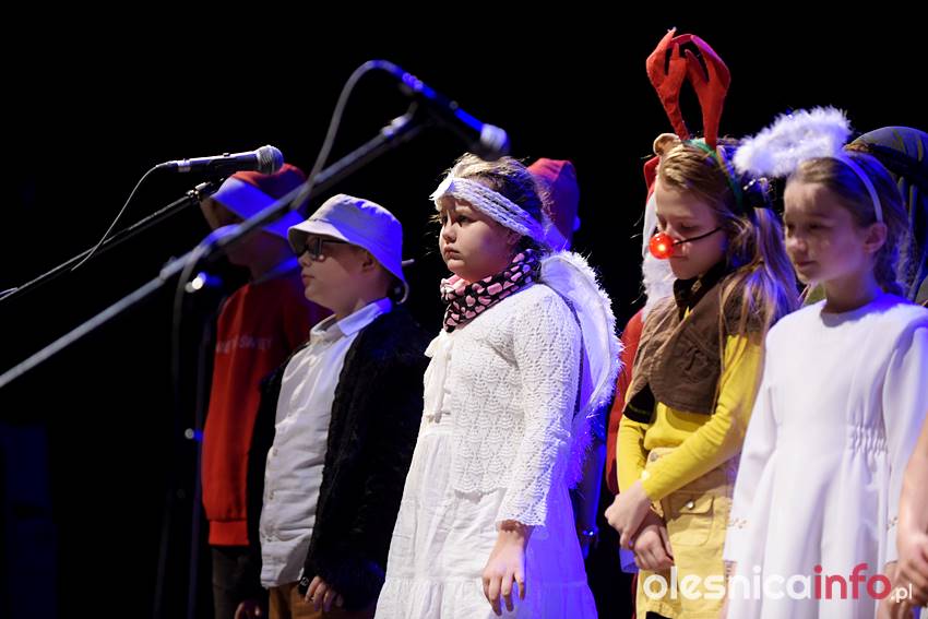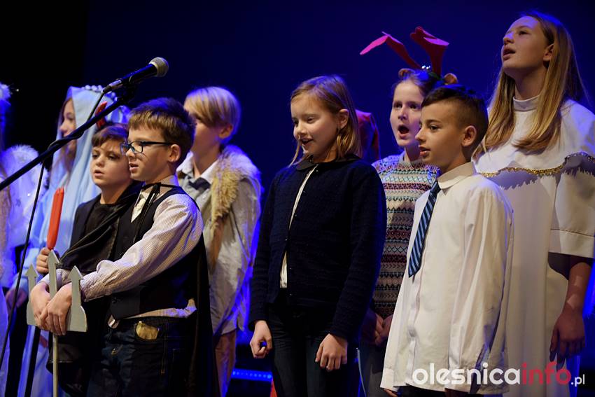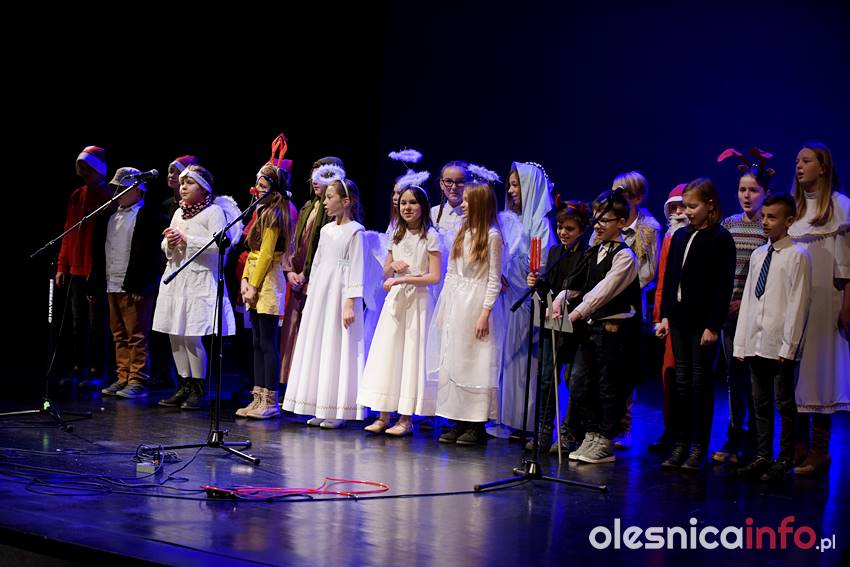 Uczniowie Szkoły Podstawowej nr 4 kolędowali na scenie oleśnickiej sali widowiskowej. Wszystkie klasy pokazały się w krótkich świątecznych prezentacjach.