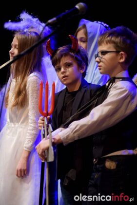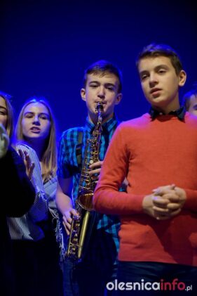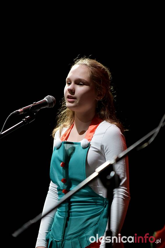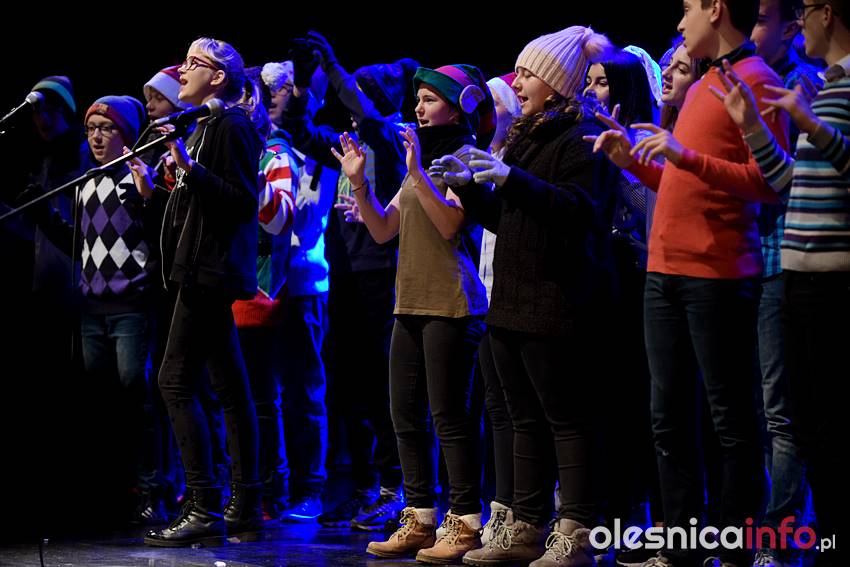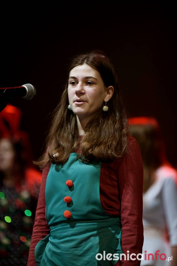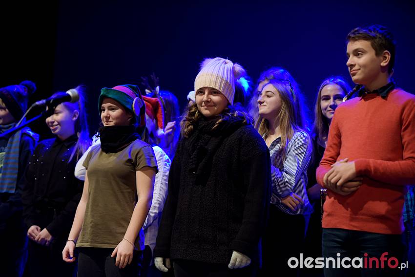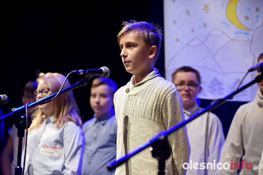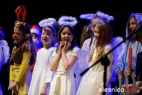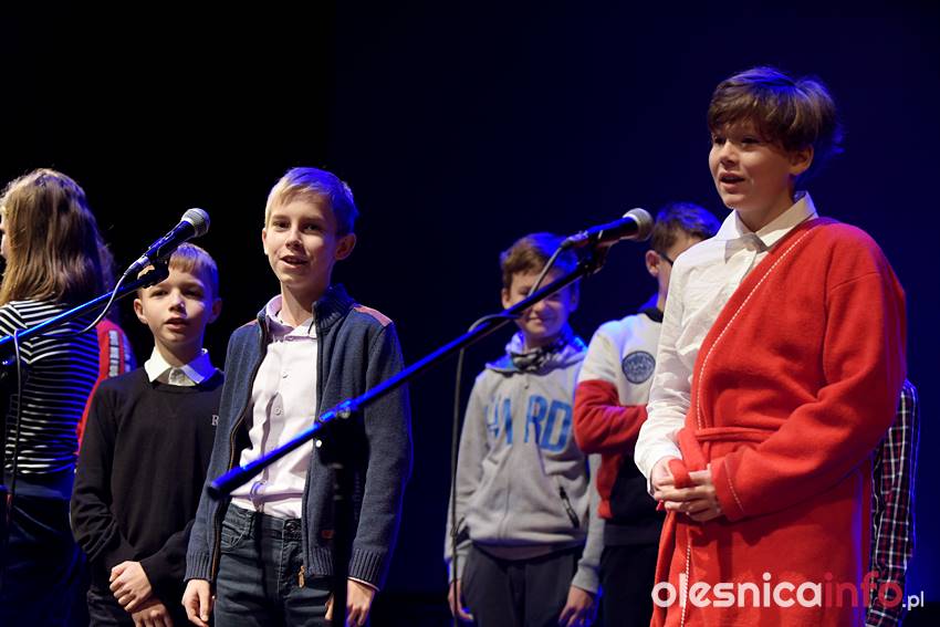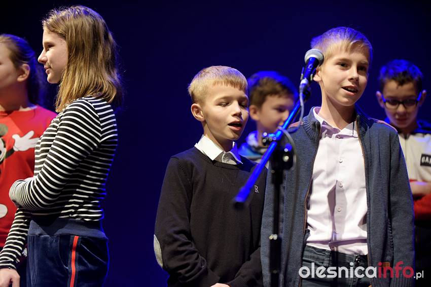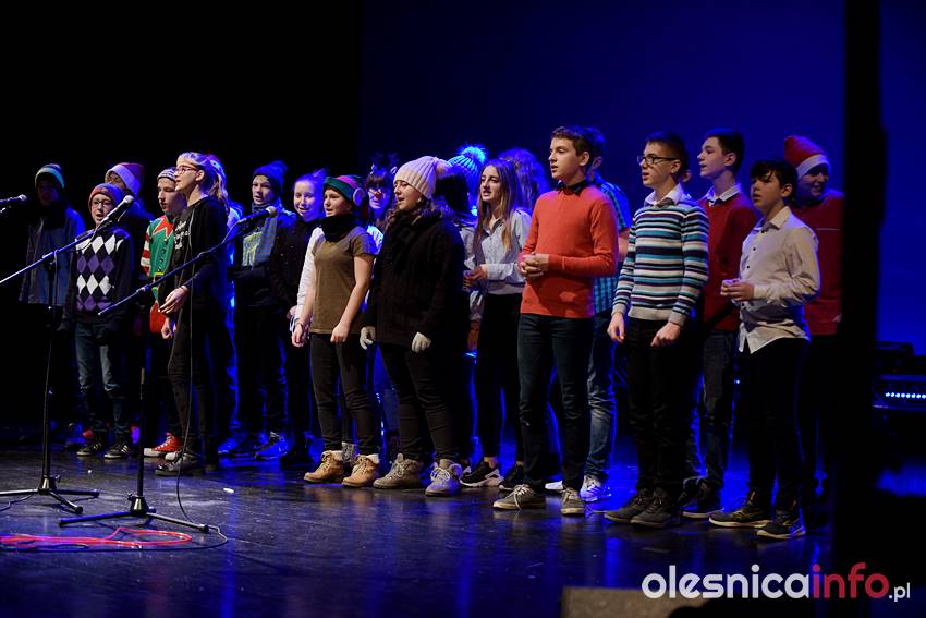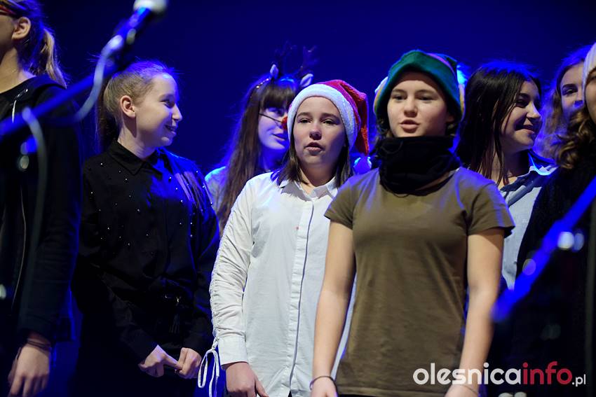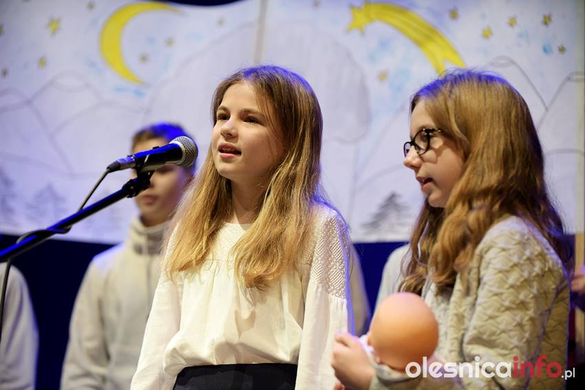 Uczniowie Szkoły Podstawowej nr 4 kolędowali na scenie oleśnickiej sali widowiskowej. Wszystkie klasy pokazały się w krótkich świątecznych prezentacjach.