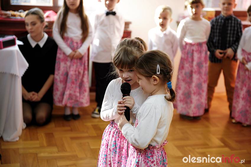 Były piosenki i wiersze prezentowane przez podopiecznych przedszkola. Nie zabrakło również słodkiego poczęstunku. Do występu dzieci przygotowały Liwia Mrowicka i Sylwia Wawrzynkowska.