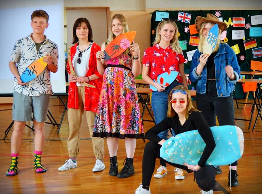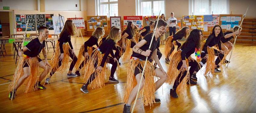 Klasy pierwsze, drugie oraz 3a i 3d uczestniczące w Dniu Języków Obcych zaprezentowały charakterystycznego dla wybranego przez siebie kraju przebranie oraz rekwizyt. Uczniowie mieli też możliwość obejrzenia umiejętności taneczno-sportowych swoich kolegów.