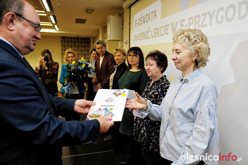 Dyplomy za udział w konkursie wręczył burmistrz Jan Bronś. Odebrali go dyrektorzy oleśnickich szkół. – Narzędzia cyfrowe to wsparcie a nie zastąpienie działań edukacyjnych, ale cieszę się, że są one realizowane – mówił burmistrz.