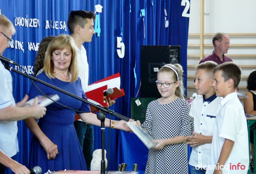 Związane to było z pożegnaniem obecnej, wieloletniej dyrektor tej placówki Elżbiety Pietraszek. Uroczystego wręczenia nagrody dla najlepszego absolwenta tejże szkoły oraz pożegnania pani Elżbiety, która kierowała placówką przez 22 lata dokonał wójt Gminy Dobroszyce Artur Ciosek. W uroczystości wzięli również udział m.in. przewodniczący Rady Gminy Dobroszyce Dariusz Palma oraz zastępca wójta Gminy Dobroszyce Tomasz Urbaniak.