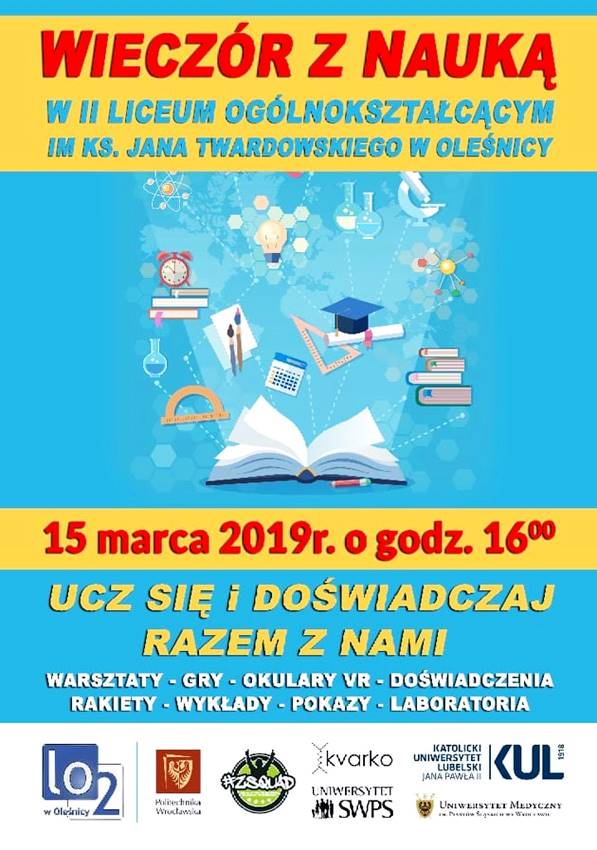 II Liceum Ogólnokształcące im Ks. Jana Twardowskiego w Oleśnicy to szkoła, która dokłada starań, aby nauka stała się czymś więcej, niż tylko obowiązkiem. 15 marca placówka zaprasza na Wieczór z Nauką.