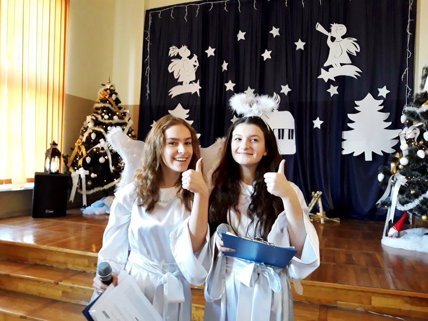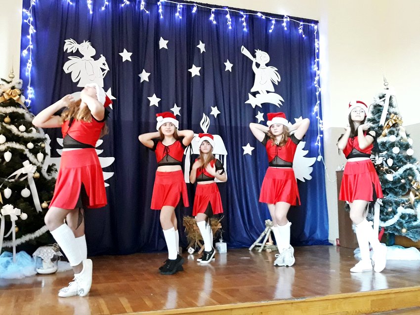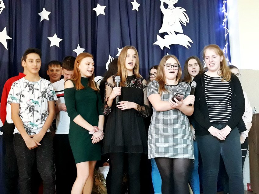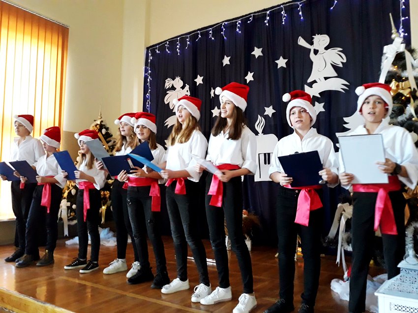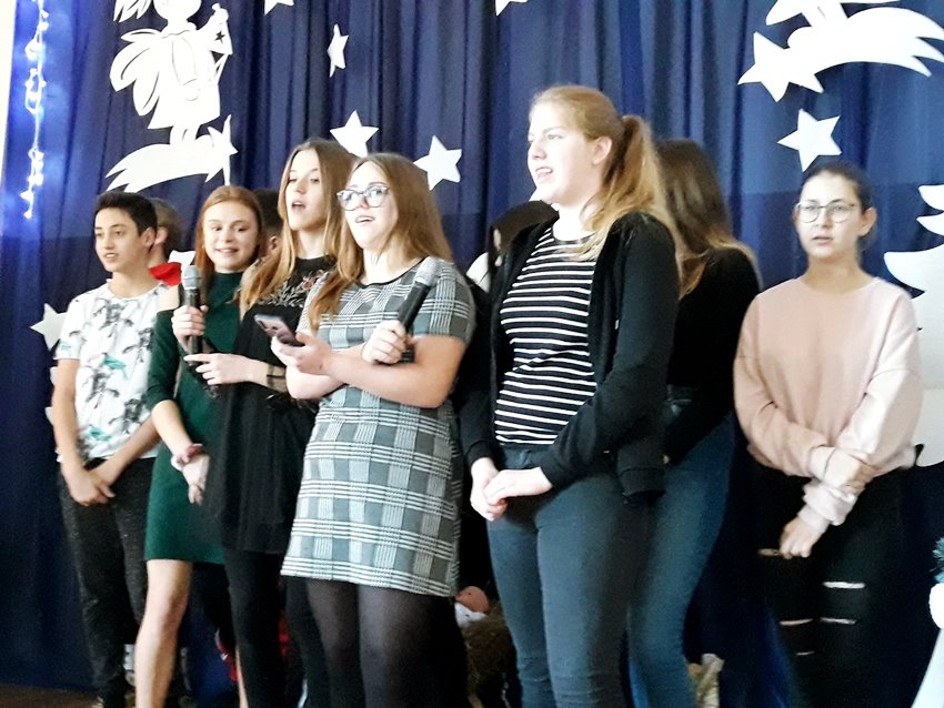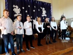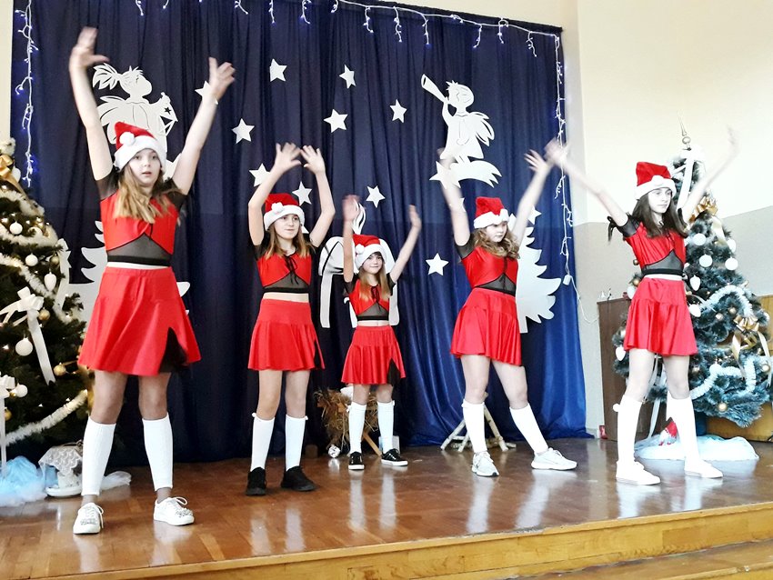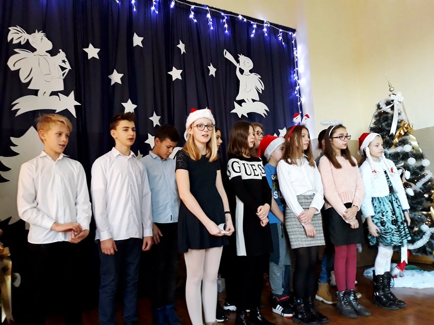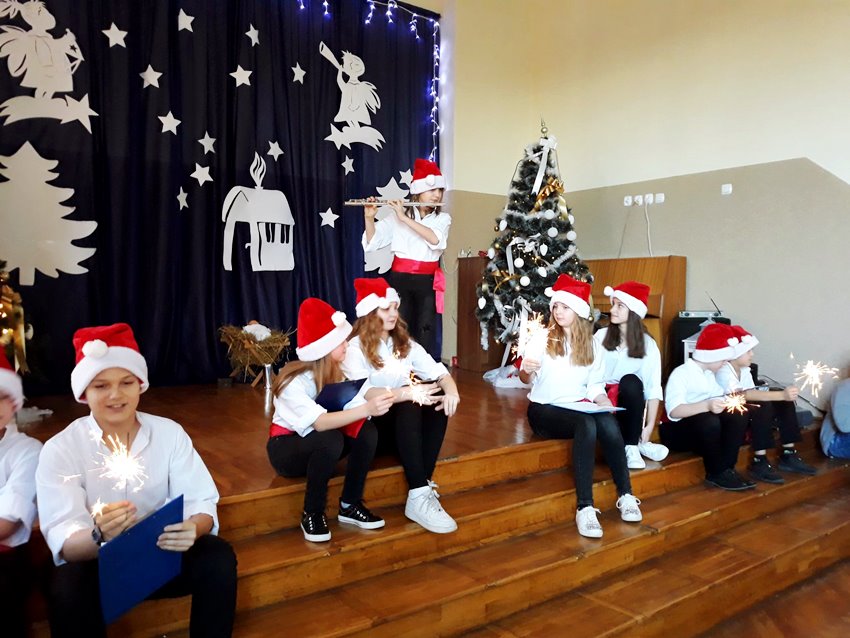 Cała społeczność szkolna- uczniowie, rodzice, nauczyciele i dyrekcja zadbała o to, by dzień ten był dniem wyjątkowym. W świąteczną atmosferę wprowadziło nas rozstrzygnięcie szkolnego konkursu na najpiękniejszą kartkę i/ lub stroik bożonarodzeniowy. Laureaci otrzymali pamiątkowe dyplomy i nagrody ufundowane przez radę rodziców. A potem… rozbrzmiały dźwięki kolęd, pastorałek i piosenek o tematyce świątecznej. Nie było na sali osoby, która nie nuciłaby usłyszanych utworów. Okazało się, że wspólne muzykowanie to doskonały pomysł. Brawurowy występ Mikołajek z klasy Va zakończył przedświąteczne spotkanie. – Mamy nadzieję, że Koncert Kolęd stanowić będzie odtąd piękną tradycję w naszej szkole w przeddzień najbardziej wzruszających polskich świąt – mówią nauczyciele.