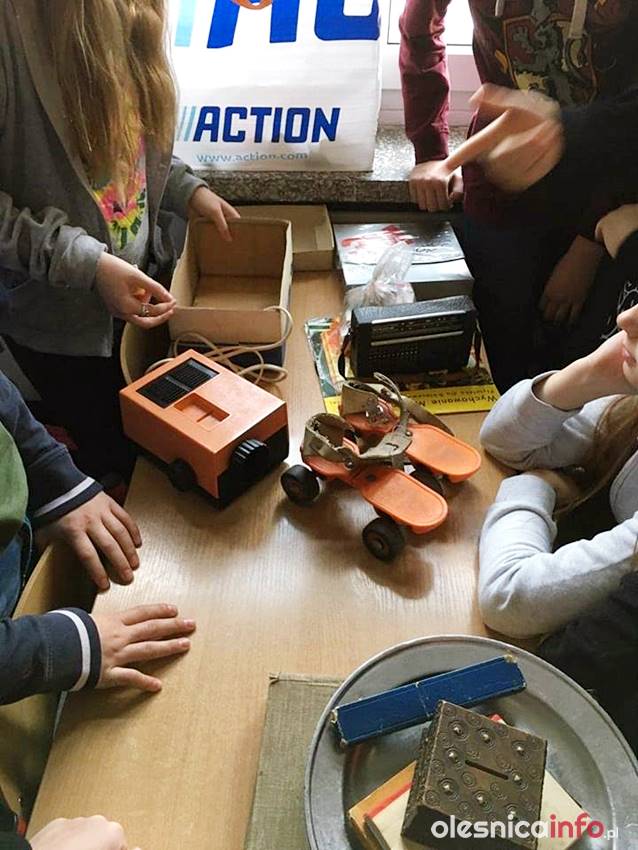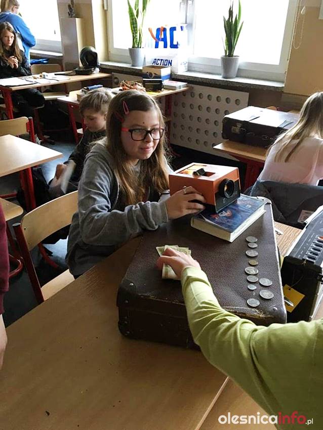– Uczniowie przynosili pamiątki z poprzedniej epoki. Wśród wielu przedmiotów znalazły się banknoty, monety, walizki, książki, biuletyny, zabawki rodziców, zdjęcia – relacjonuje placówka. – Wszyscy mogli posłuchać muzyki z lat siedemdziesiątych odtwarzanej z kasety magnetofonowej, obejrzeć przygody „Smerfów” wyświetlane projektorem kliszowym.