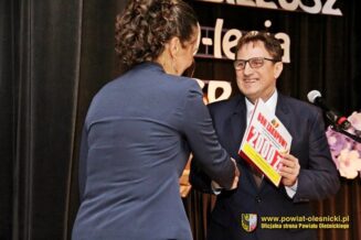 Na słowa te goście przybyli do sali widowiskowej ośrodka kultury zareagowali głośnymi brawami. Oklaskami nagrodził je również dolnośląski kurator oświaty Roman Kowalczyk.