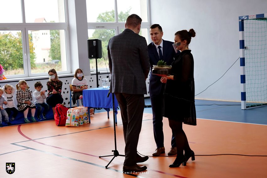 Zaproszeni samorządowcy złożyli gratulacje na ręce burmistrza, a dzieciom przekazali życzenia i wręczyli prezenty. Pozostali goście, również nie omieszkali zostawić podarunków, które będą służyły przedszkolakom w zabawie i dalszej edukacji.