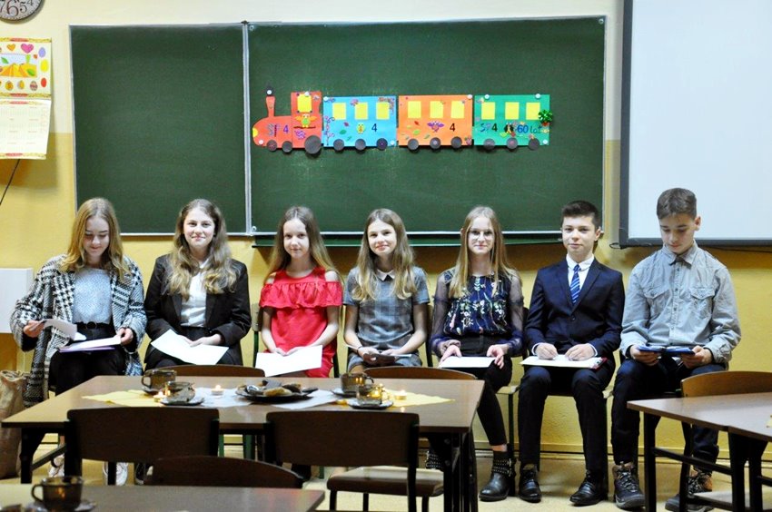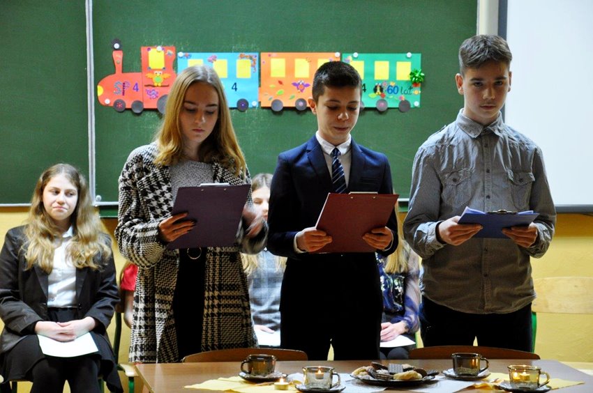 Tematyka tego spotkania nawiązywała do sylwetki naszego patrona – profesora Romana Podoskiego, który za swoje osiągnięcia zawodowe został nazwany ojcem elektryfikacji kolei w Polsce. Wystąpili podczas niego bardzo uzdolnieni uczniowie: Wiktoria Bryn, Hubert Pietrzak-Rogala, Zuzanna Koziara, Magdalena Żołyńska, Martyna Siwonia, Natalia Tomaszewska i Wojciech Latosi. O wystrój sali, w której spotkali się młodzi artyści, ich rodzice i przedstawiciele grona pedagogicznego, zadbały Iwona Iskra i Ewa Płaneta. Podczas tego wieczoru wykorzystano teksty liryczne, m. in. Charlesa Baudelaire’a i Zbigniewa Herberta. W scenariuszu pojawił się