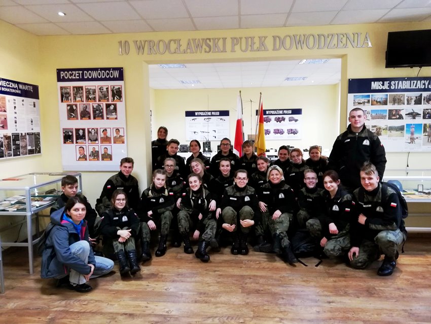 Uczniowie mogli zobaczyć zaplecze szkoleniowe pułku, strzelnicę, OSF oraz halę sportową. Ważnym punktem wizyty był pokaz udzielania pierwszej pomocy przedmedycznej, zaprezentowany przez Grupę Zabezpieczenia Medycznego pułku. Nieodłącznym elementem każdej wizyty jest zapoznanie się w historią i tradycjami 10. Wrocławskiego Pułku Dowodzenia. O symbolach, sprzęcie i korzeniach istnienia pułku opowiadał kustosz Sali Tradycji – st. chor. szt. Mirosław Krysiak.