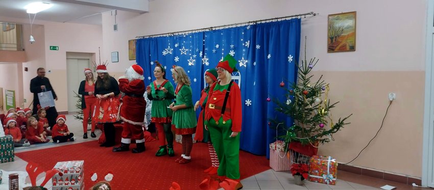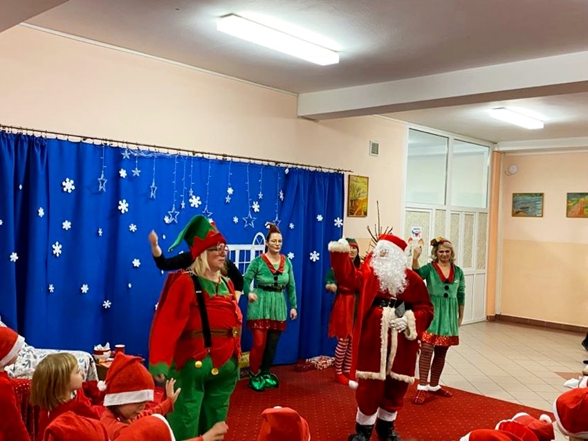 I w końcu nadszedł ten oczekiwany 6 grudnia i tu kolejną niespodziankę przygotowały panie utalentowane aktorki: Terenia, Tereska, Agnieszka, Ania, Iwonka i Ewa. Dając popis swoich umiejętności przy pięknej scenograf wystąpiły przed dziećmi i zaproszonymi gośćmi w inscenizacji pt. „W pracowni Świętego Mikołaj”.