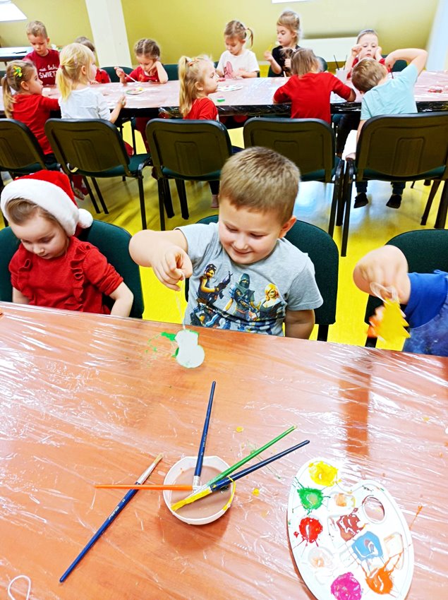 Wśród zadań wytyczył 4 stacje takie jak: koło fortuny, bombkę łap, figurowe malowanie oraz mleczko i ciasteczko. Dzieci aktywnie brały udział we wszystkich zabawach, Quizach, tańcach i przepięknych śpiewach.