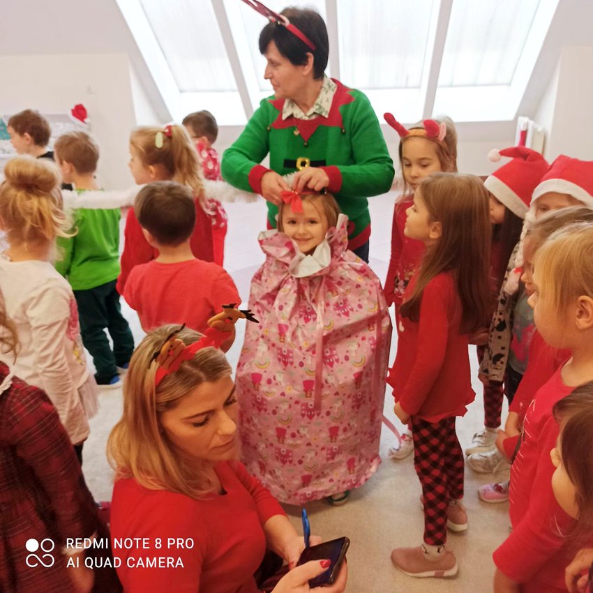 Pełne zaangażowania wcieliły się w role bohaterów. Niezwykłym przeżyciem dla dzieci było ujrzeć „swoją Panią” wcielającą się w jedną z postaci. Po przedstawieniu zjawiał się Mikołaj przez wszystkich wyczekiwany z wielkim workiem prezentów. Przedszkolaki za otrzymane upominki podziękowały Mikołajowi piosenkami. Dzieci zapraszały go do swoich domów oraz prosiły, żeby odwiedził ich za rok. No i oczywiście obiecywały, że będą grzeczne i będą słuchać swoich pań. Dzień ten na długo pozostanie w pamięci wszystkich przedszkolaków, a niektórzy z nich już od jutra nie będą mogli doczekać się kolejnej wizyty Mikołaja.