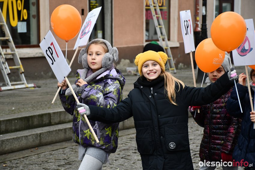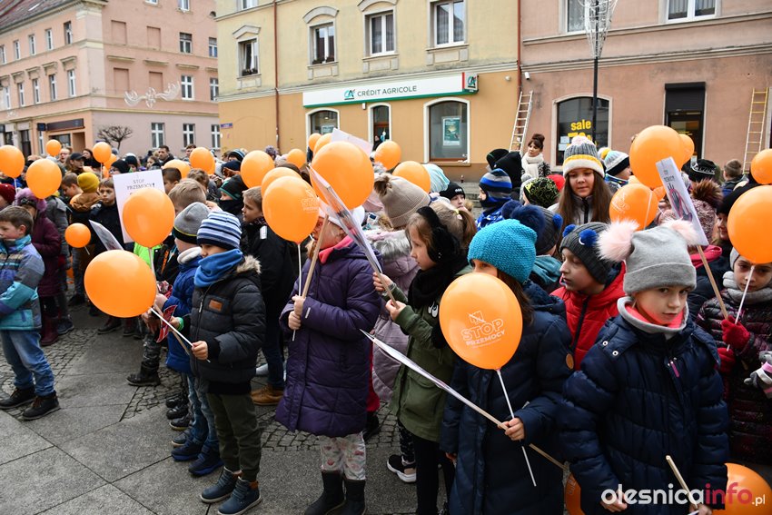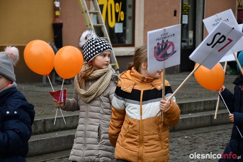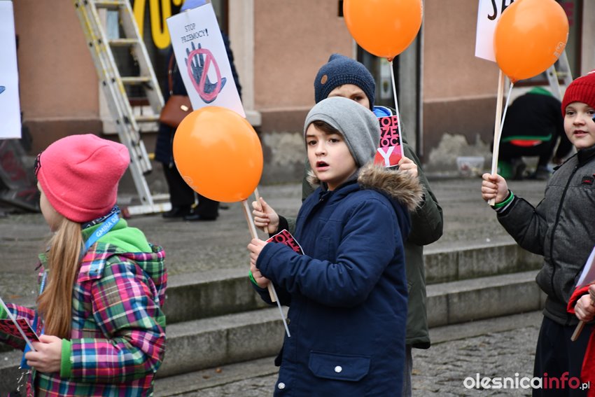 Dzisiaj na oleśnickim Rynku uczniowie miejskich szkół wzięli udział w manifestacji dotyczącej przeciwdziałania przemocy.