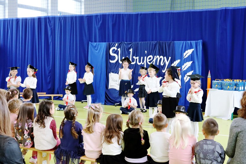 Dzieciom, w tym ważnym dniu, towarzyszyli rodzice, nauczyciele, dyrekcja szkoły oraz zaproszeni goście. W trakcie apelu dzieci zaprezentowały bogaty program artystyczny. Po części artystycznej dyrektor Bernarda Sieczka dokonała symbolicznego aktu pasowania ołówkiem, przyjmując tym samym pierwszaków do grona szkolnej społeczności. Po pasowaniu głos zabrał wójt Artur Ciosek, który życzył wszystkim pierwszakom by każdy dzień w szkole dostarczał im wspaniałych przygód z nauką oraz radosnych chwil w towarzystwie kolegów, koleżanek i nauczycieli.