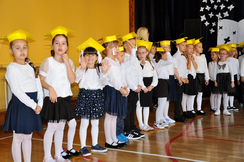 Podczas uroczystości pierwszoklasiści pokazali, że potrafią pięknie tańczyć, szczególnie poloneza. Najważniejszą częścią uroczystości, na którą wszyscy czekali było ślubowanie oraz pasowanie wielkim ołówkiem przez dyrektorki – Ewę Robotycką-Ślak i Agatę Pietrzak. Pierwszaki głośno i z przekonaniem przyrzekały być dobrymi i pilnymi uczniami oraz rzetelnie wypełniać swoje obowiązki.