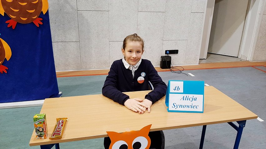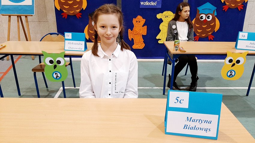 Poszczególne klasy reprezentowali: Maja Dubanowicz 4a, Alicja Synowiec 4b, Klara Jasięga 5a, Julia Słońska 5b, Martyna Białowąs 5c, Aleksandra Ostrowska 5d, Nikola Storch 6a, Julia Rajewska 6b, Albina Sidzinska 6d, Jan Stasiak 6e, Hanna Przybysz 7a, Filip Mozol 7b, Bartosz Jasiński 8a, Mateusz Sobkowiak 8b, Jakub Łuc 8c.