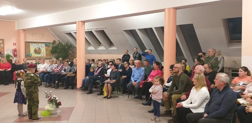 – Po występach artystycznych, zaprezentowanych przez dzieci z grupy „Pszczółki”, wszyscy zaproszeni goście wzięli udział w odśpiewaniu pieśni patriotycznych, którym przewodniczyła Halina Skupińska, wieloletni pracownik i przyjaciel naszego przedszkola – informuje nasz portal Agnieszka Wojtowicz.