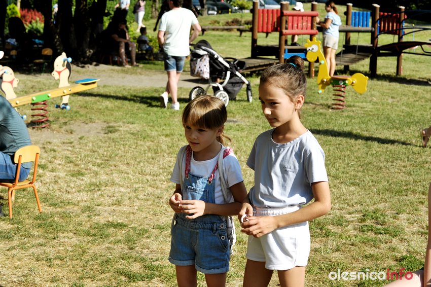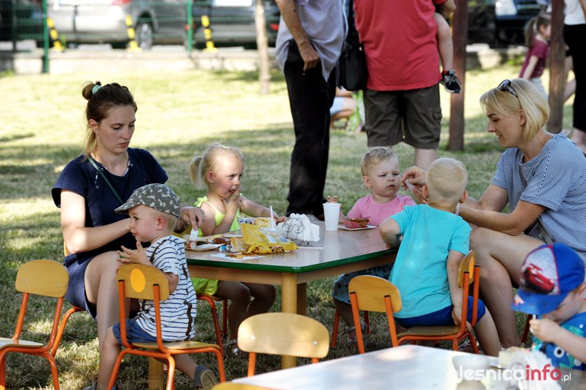 Można było korzystać ze smakołyków przygotowanych na grillu, słodkich ciast podawanych w kawiarence oraz szeregu konkurencji i zabaw rekreacyjnych, które przygotowano dla przedszkolaków. O dobrą muzykę i zabawę przy niej dbał Zbigniew Jakubowski. Rodzice i dzieci zajęli wszystkie wolne ławeczki, stoliki i miejsca na kocykach. To był prawdziwy rodzinny piknik pod chmurką.