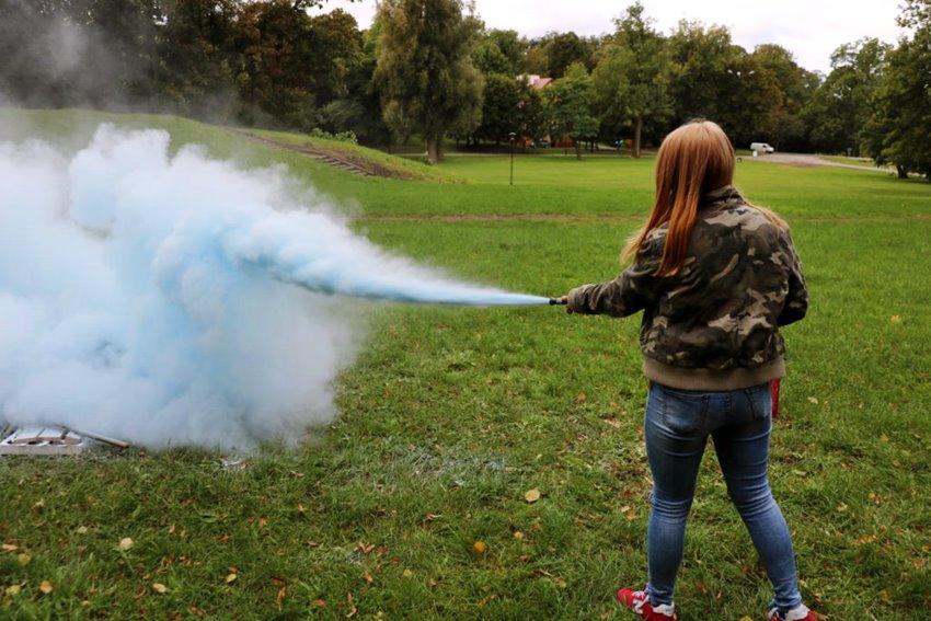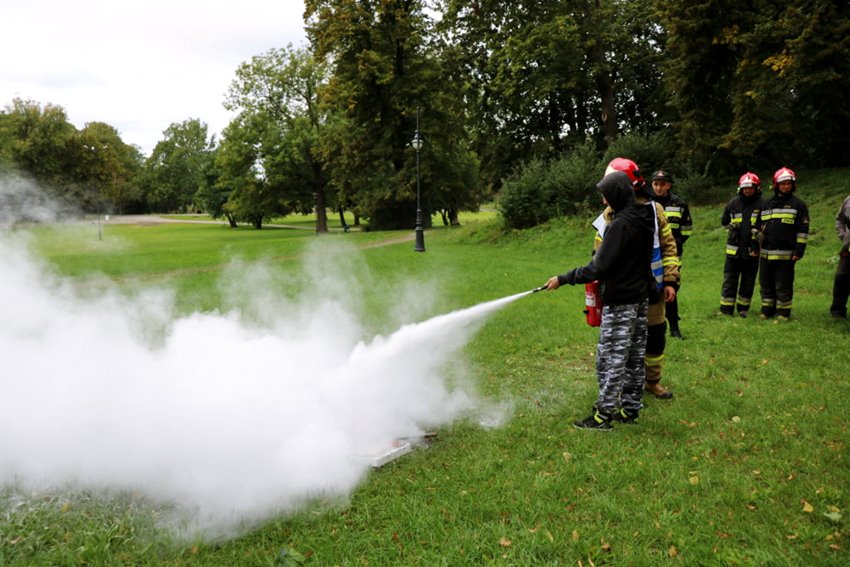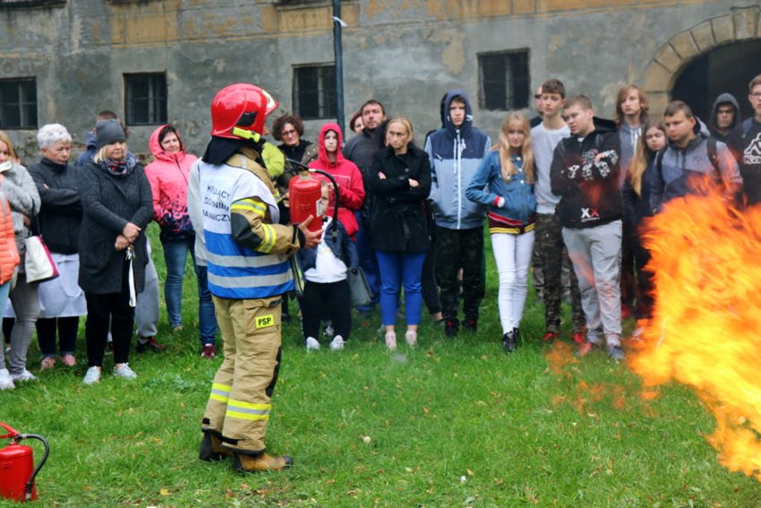 18 września pracownicy i młodzież mieli okazję wykorzystać zdobytą dzień wcześniej wiedzę w praktyce. O godzinie 9:30 rano w CKiW OHP rozległ się dźwięk syreny, wzywającej do ewakuacji. Był to znak, że rozpoczynają się ćwiczenia przeciwpożarowe. Młodzież wraz z pracownikami w szybkim tempie udała się poza teren Zamku. Próbna ewakuacja przebiegła bardzo sprawnie. Po udanej ewakuacji została przeprowadzona próba gaszenia ognia za pomocą gaśnicy proszkowej.