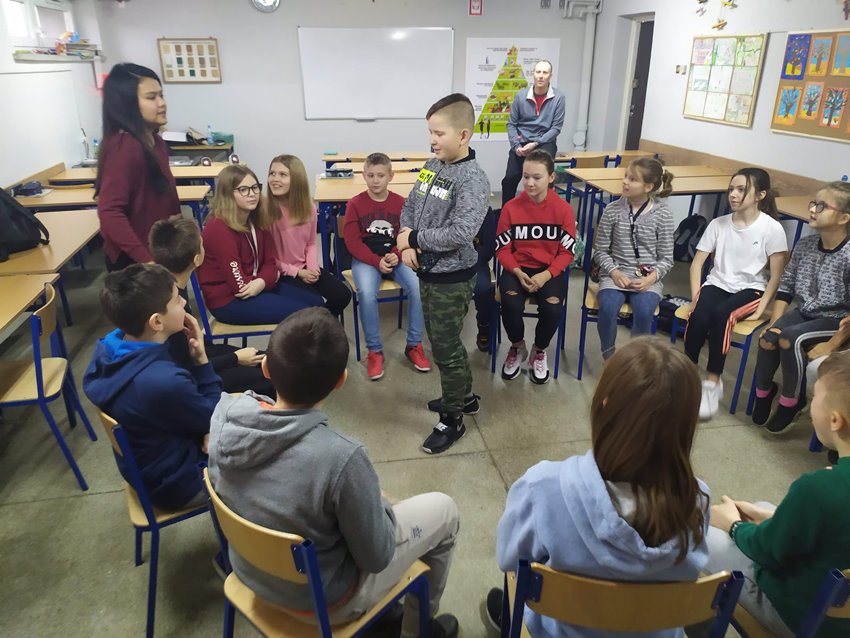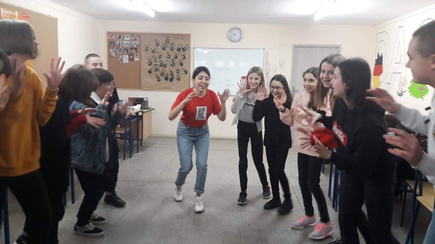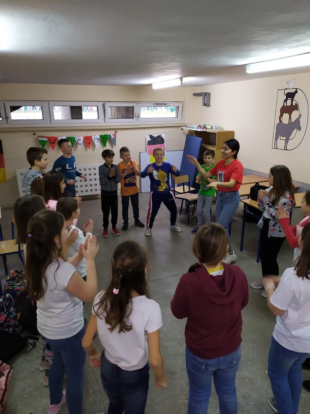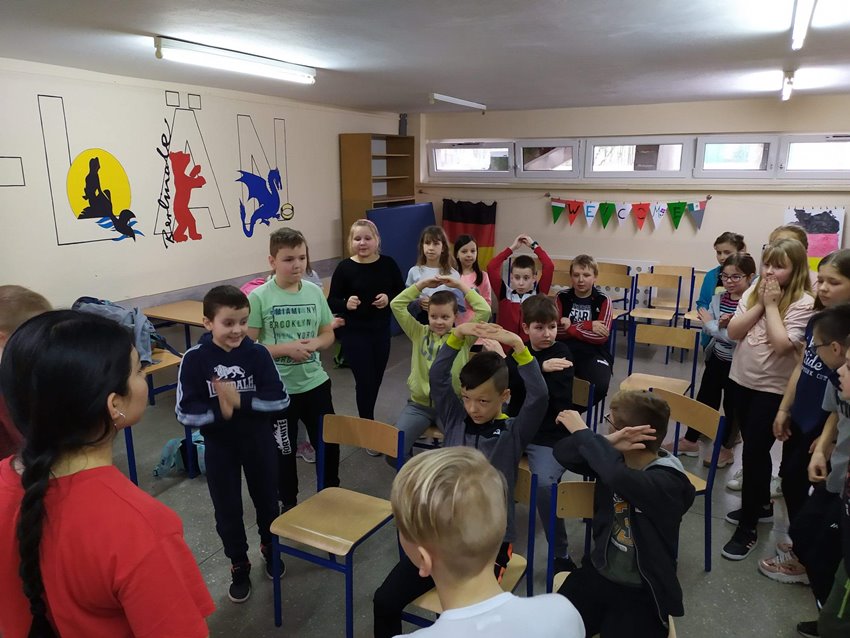 Spotkaniom towarzyszyły energiczne tańce i zabawy integracyjne. Różnorodne zadania językowe były okazją do doskonalenia umiejętności komunikacyjnych i interpersonalnych a krótkie prezentacje krajów wzbudzały zaciekawienie światem. Goście szóstki chwalili zaangażowanie i zdolności językowe wielu naszych uczniów.