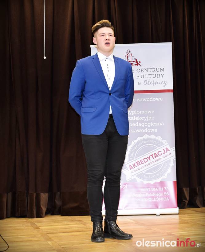 Mateusz Stelmach był niezrównany w swojej emocjonalnej interpretacji wiersza Adama Mickiewicza ,,Reduta Ordona,, i uzyskał tytuł laureata 64. Dolnośląskiego Konkursu Recytatorskiego w kategorii recytacja. Będzie reprezentował nasze miasto i powiat na eliminacjach regionalnych. Opiekunem artystycznym obu laureatów była Lucyna Sutuła.
