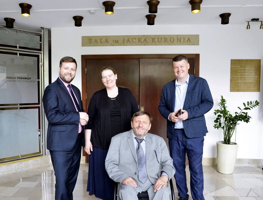 Cała grupa uczniów została zaproszona do Sali im. Jacka Kuronia, gdzie odbywają się posiedzenia Sejmowej Komisji ds. Petycji. Uczniów przywitał poseł Sławomir Piechota, który przybliżył istotę działalności Komisji, uświadamiając uczniom, jak ważna jest aktywność społeczna, aktywność obywatelska, którą w pracy tego organu Sejmu widać najlepiej. Do tej Komisji właśnie trafiają petycje zwykłych ludzi, którzy zwracają w nich uwagę parlamentarzystom i rządzącym na aspekty życia społeczno- politycznego, które działają wadliwie i które należy poprawić.