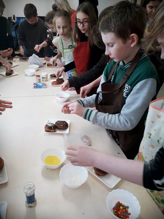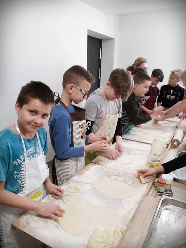 W polską tradycję „tłustego czwartku” wprowadziły ich kucharki, które w formie miłej zabawy nauczyły piątoklasistów robienia i wypieku pączków oraz faworków. Każdy uczeń miał możliwość udekorować swój wyrób. Potem nastąpiła przyjemna degustacja.