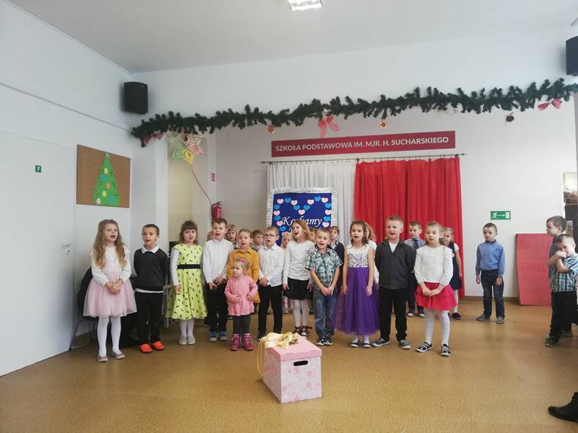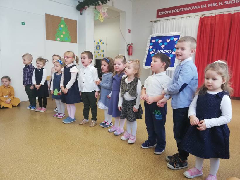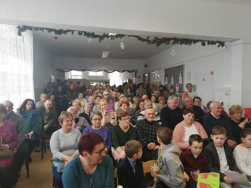 Z tej okazji grupy przedszkolne i młodsze dzieci z klas I-IV przygotowały wraz ze swoimi opiekunkami występ artystyczny. Wnuki śpiewały i recytowały wiersze o swojej wielkiej miłości do dziadków. Dziękowały za poświęcany im czas i za dobre obiadki. Okazało się, że dzisiejsze babcie są wręcz odlotowe, mają prawo jazdy, chodzą do fryzjera, butiku czy na aerobic, a pomysłów mają bez liku. Natomiast dziadkowie biorą udział w maratonach, najlepiej jeżdżą na rowerze i organizują czas wnukom bo rodzice są zapracowani. Dzieci zawsze mogą liczyć na dziadków bo kto jak nie oni zawiozą na kręgle, tańce czy basen? Dziadkowie zawsze też wysłuchają, doradzą lub pomogą w lekcjach. Na koniec dzieci złożyły dziadkom życzenia długich lat w zdrowiu i wręczyły samodzielnie przygotowane upominki. Po części artystycznej babcie i dziadkowie zaproszeni zostali na słodki poczęstunek przygotowany przez mamy uczniów.
