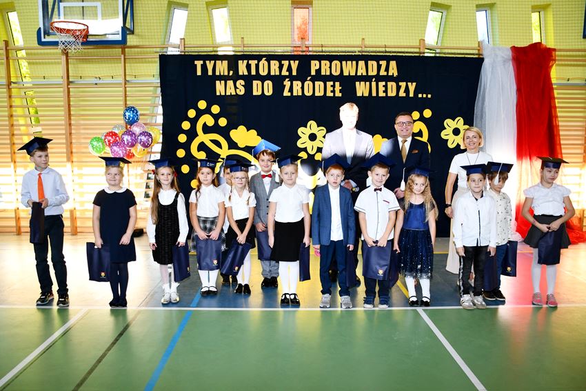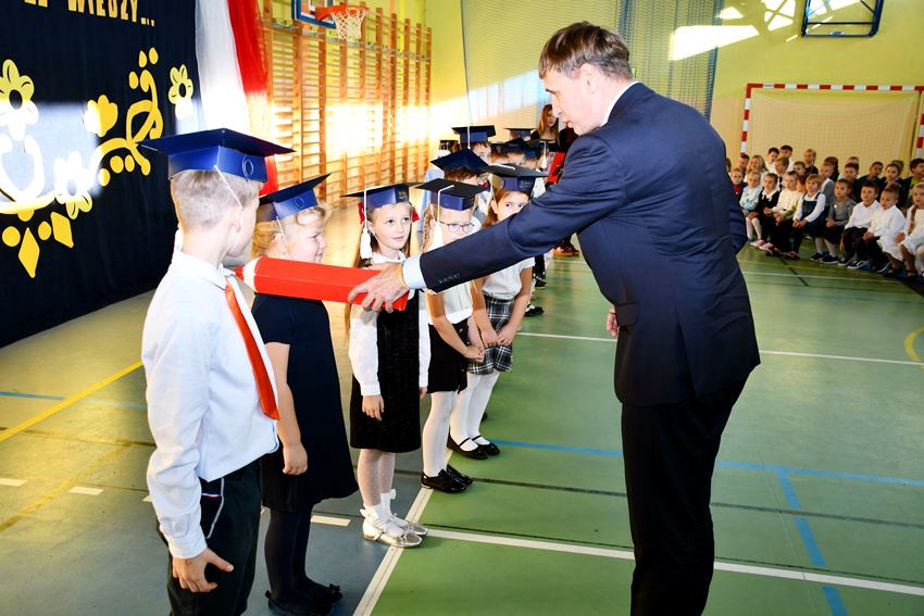 – Pasowanie na ucznia to wielka chwila i ważny moment dla Was, Waszych rodziców i całej społeczności szkolnej. Wszyscy jesteśmy z Was dumni – zwrócił się do uczniów wójt Marcin Kasina. – Życzę Wam, żebyście zawsze byli tak uśmiechnięci i radośni jak podczas dzisiejszego wydarzenia. Pamiętajcie, że szkoła to nie tylko obowiązki ale też miejsce nawiązywania relacji i zawierania przyjaźni, miejsce nauki ale i dobrej zabawy. Niech każdy dzień szkolny będzie dla Was okazją do rozwoju i spełnienia Waszych marzeń.
