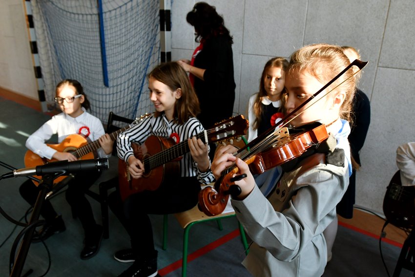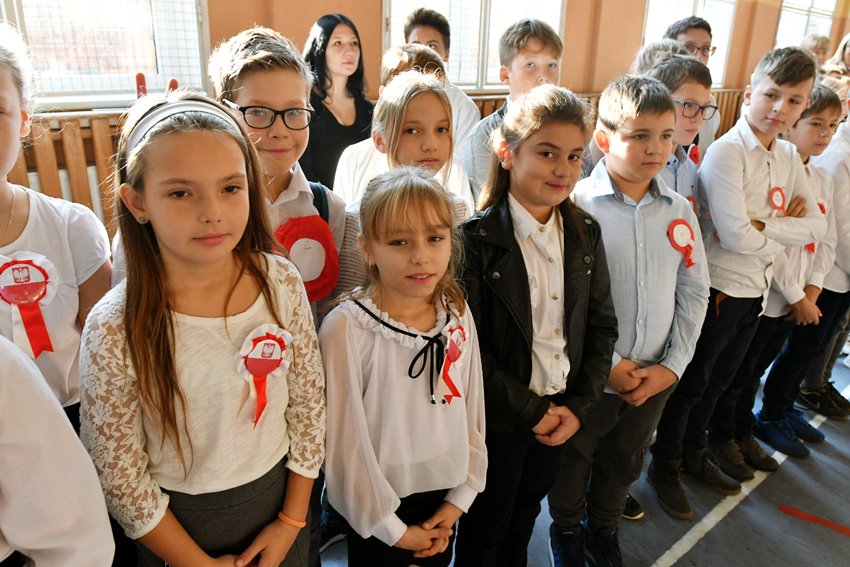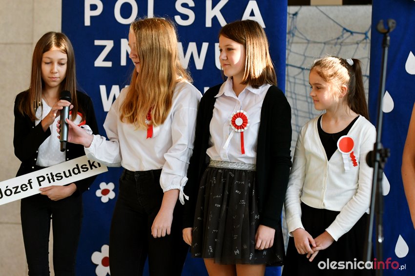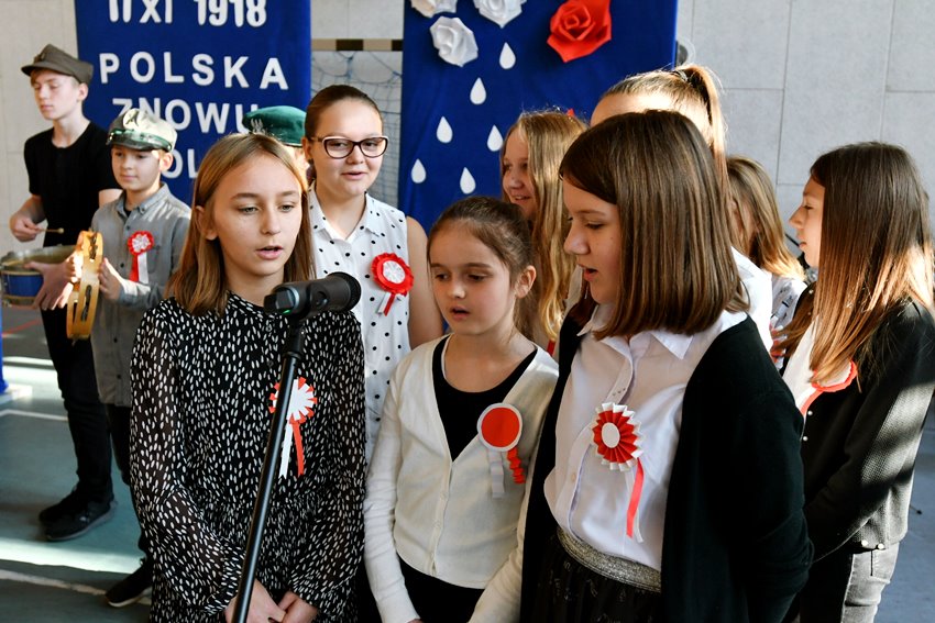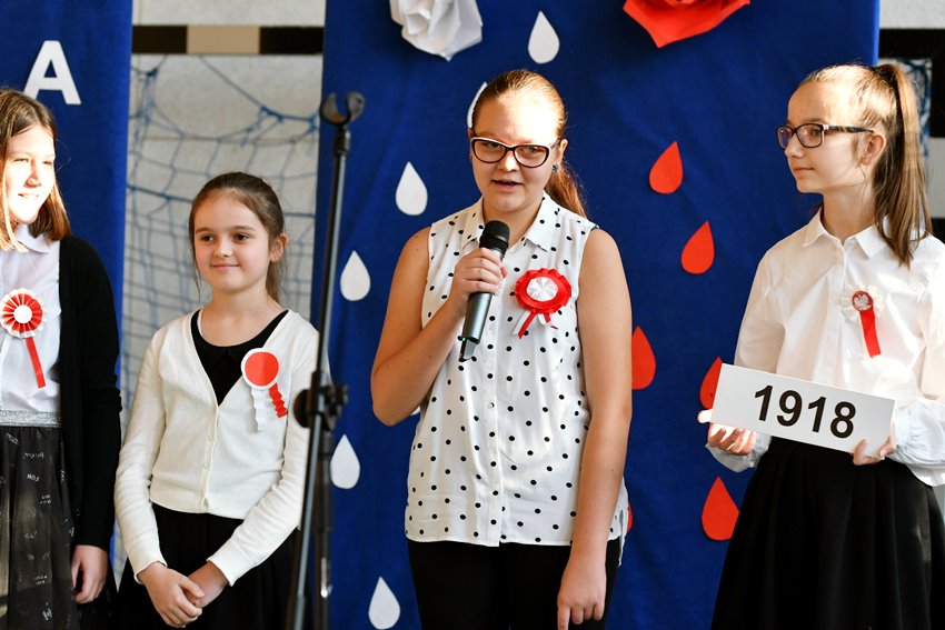 O znaczeniu tej daty w historii Polski mówili dyrektor szkoły Janina Zdanowicz, wiceburmistrz Edyta Małys-Niczypor, a także przedstawiciel rodziców Piotr Błaszczak. Uczniowie przygotowali część artystyczną związaną z listopadowym świętem, którą zaprezentowali przed swoimi koleżankami i kolegami. Były więc patriotyczne piosenki i krótkie odniesienie do historycznych wydarzeń sprzed ponad stu lat.