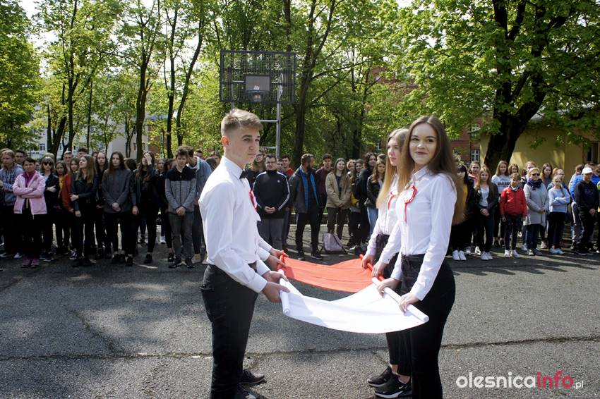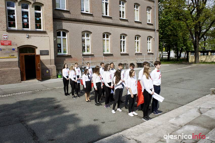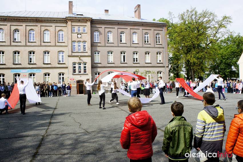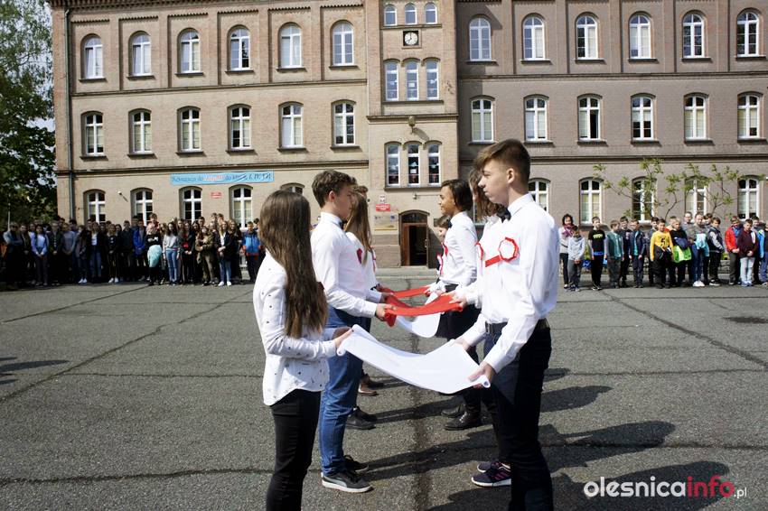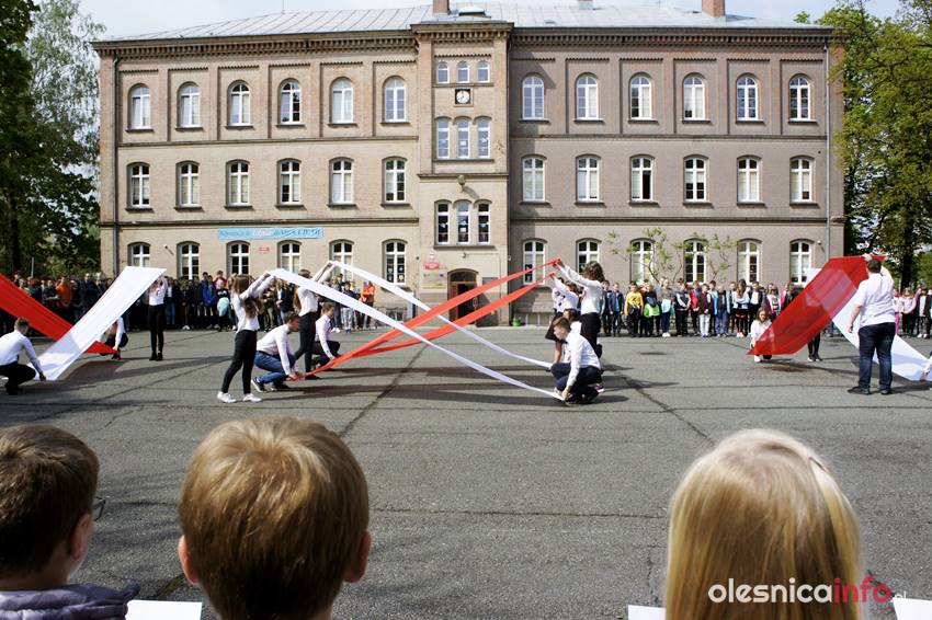 – Podczas apelu uczniowie klasy 2 a przypomnieli wszystkim, znaczenie ważnych majowych dat: 1 maja – Święto Pracy, 2 maja – Święto Flagi, 3 maja – Rocznica Uchwalenia Konstytucji 3 Maja – relacjonuje szkoła. – Podczas apelu uczniowie z klas gimnazjalnych wykonali piękny taniec z flagami, dzięki czemu dziedziniec szkoły wypełnił się bielą i czerwienią. Na zakończenie uczniowie klasy 2 a wykonali piosenkę „Jesteśmy Polką i Polakiem”, której refren głęboko zapadł w serca wszystkich zgromadzonych.