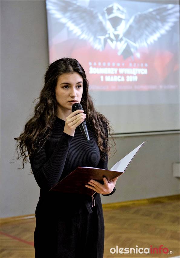 Apel poprowadzili uczniowie klasy I c Gabriela Palacz i Maciej Łacny. Wicedyrektor szkoły Katarzyna Niesobska-Łacny w swoim wystąpieniu wskazała na nieprzemijające wartości, dla młodego pokolenia, które swoją działalnością wnieśli w nasze życie Żołnierze Wyklęci.