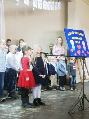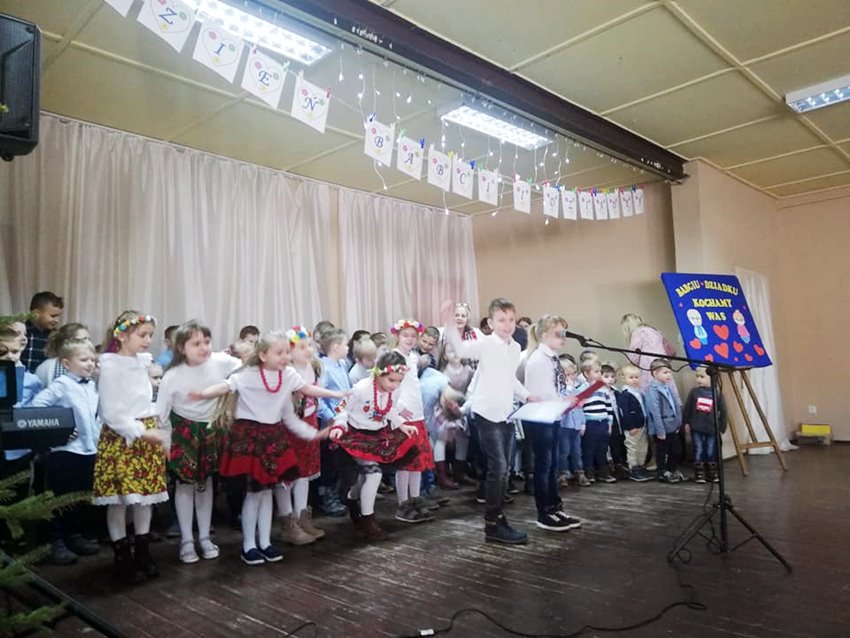 Były wierszyki, piosenki i tańce przygotowane przez najmłodszych uczniów z klas I-III i grupy przedszkolne „Krasnale” i „Pszczółki”. Po występach i brawach każde dziecko obdarowało swoich dziadków prezentami. Oczywiście nie zabrakło przytulasów, całusów i pysznych ciast z kawą lub herbatą.