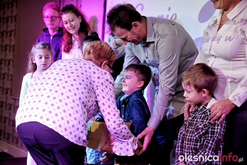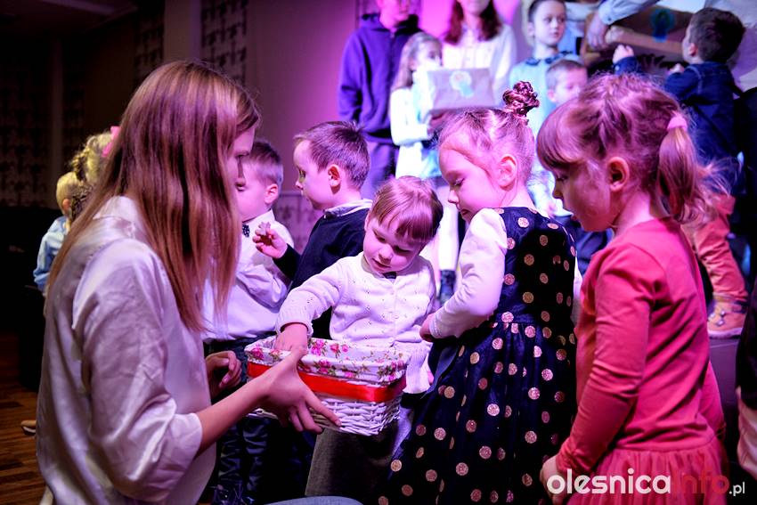 Gości witała Renata Marmajewska. – Gramy dla rodzinnego domu dziecka w Oleśnicy – mówiła, podkreślając, że ideą przedsięwzięcia jest promocja rodzicielstwa zastępczego, zbieranie darów dla rodzinnego domu dziecka. – Naszym celem jest też uwrażliwienie na drugiego człowieka, solidarność, a także umiejętność dzielenia się tym, co mamy – mówiła szefowa Bajkowego Klubu Malucha.