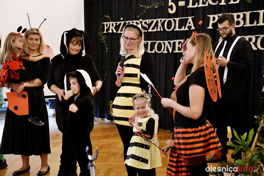 Najważniejszą częścią gali były występy przedszkolaków, którym towarzyszyli na scenie ich rodzice. Było kolorowo, wesoło i jak na jubileusz przystało radośnie. Przedszkolaki śpiewały i tańczyły, a po ich występie przyszedł czas na gratulacje i życzenia.